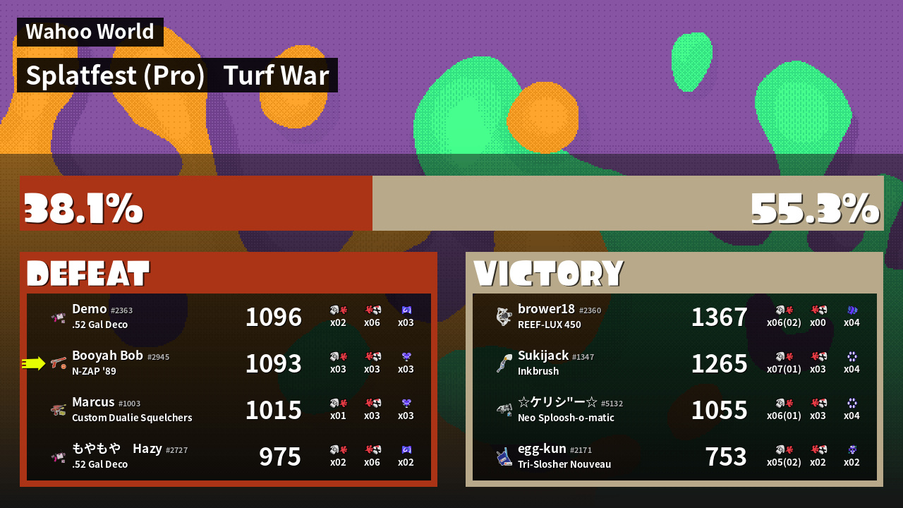 | Medals | #1 Overall Splatter #1 Popular Target #1 Enemy Splatter | ||
