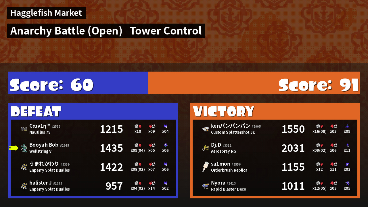 | Mode | Tower Control - Anarchy Battle (Open) | ||
