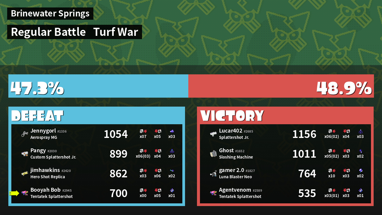 | Mode | Turf War - Regular Battle | ||