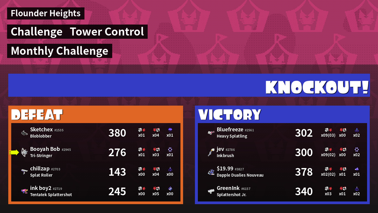 | Medals | #1 Overall Splatter #1 Enemy Splatter #1 Damage Taker | ||