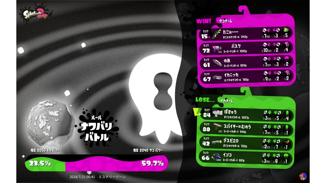 | Splatfest Title | イカ Fiend 1 → イカ Fiend 3 | |||||||||||||||||||||||||||||||