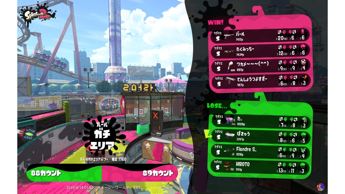 | Mode | Splat Zones - Ranked Battle | ||||||||||||||||||||||||||||||||||||||||