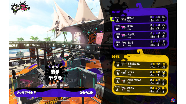 | Name | Weapon | Level | Rank | Inked | k+a/sp | k/d |