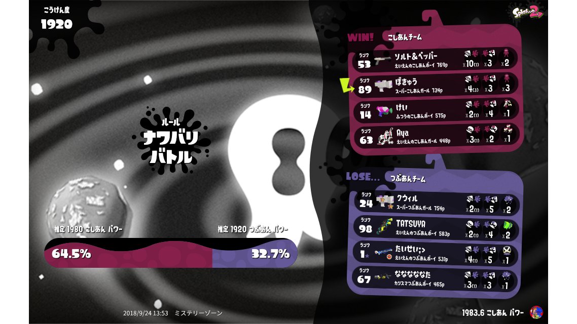| Splatfest Title | こしあん Defender 0 → こしあん Defender 90 | |||||||||||||||||||||||||||||||