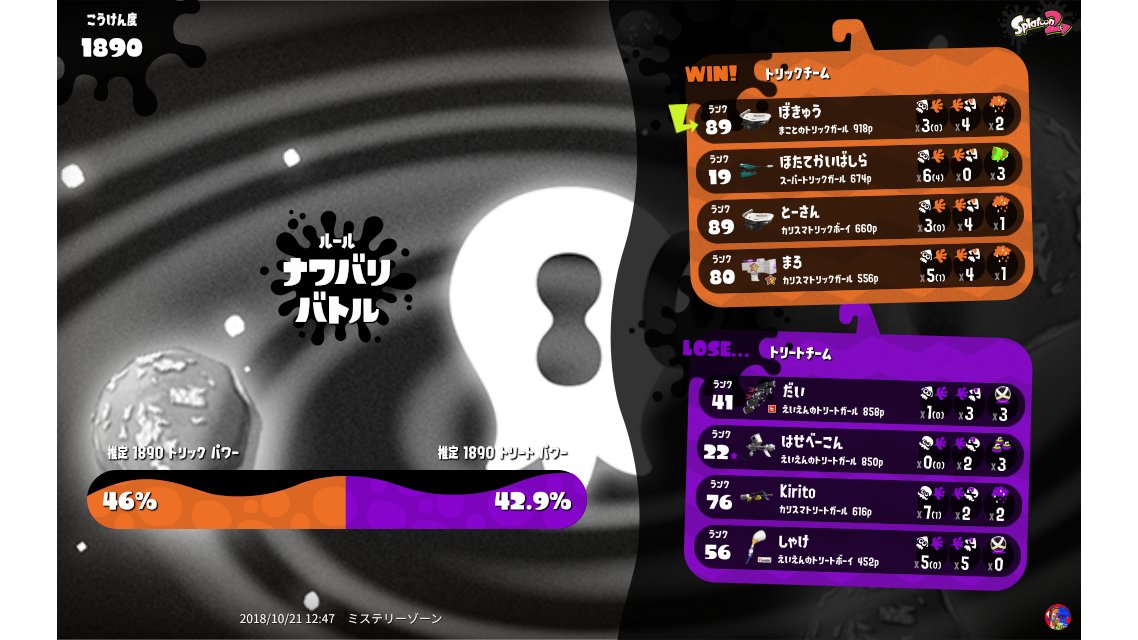 | Splatfest Title | トリック Fiend 130 → トリック Fiend 210 | ||||||||||||||||||||||||||||