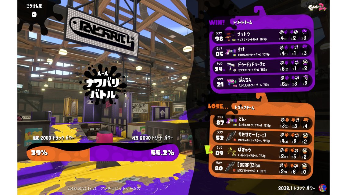 | Splatfest Title | トリック Defender 230 → トリック Defender 250 | ||||||||||||||||||||||||||||||||||