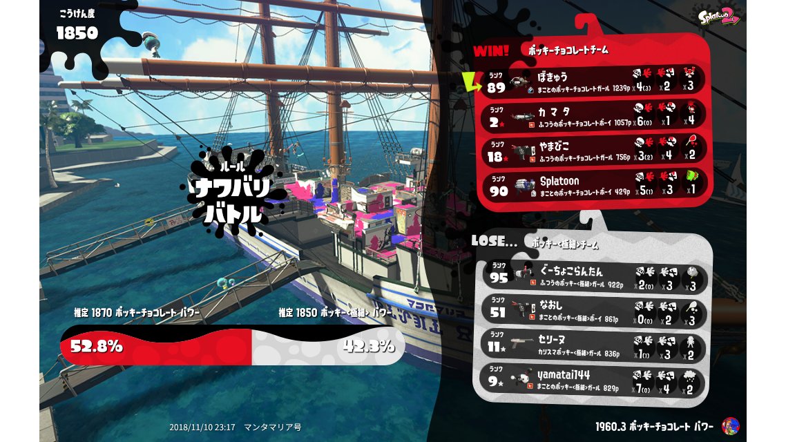 | Their team's splatfest power | 1,850 | |||||||||||||||||||||||||||||||