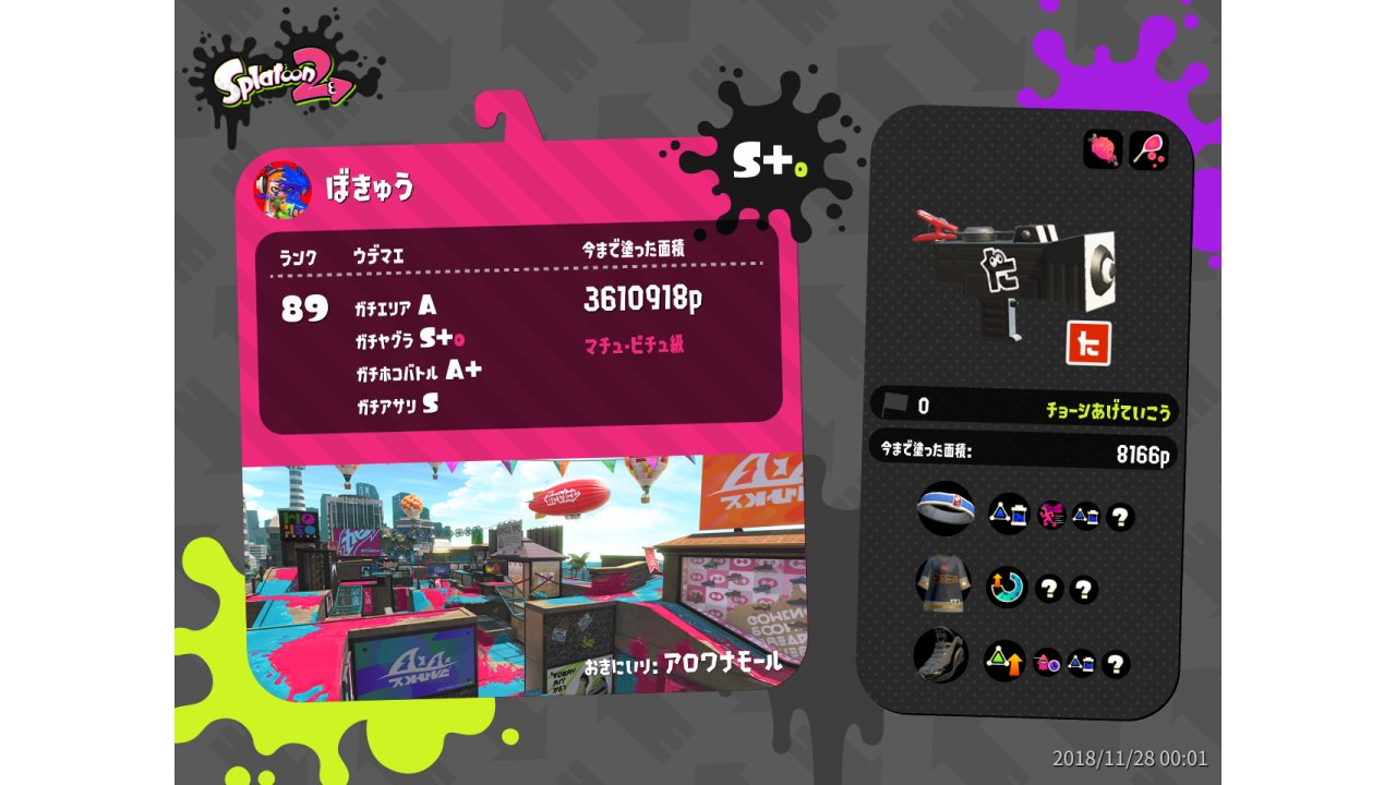 | Name | Weapon | Level | Rank | Inked | k+a/sp | k/d |