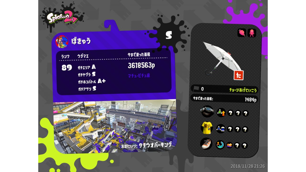 | Weapon | Kensa Undercover Brella ( Torpedo, Ink Armor) | |||||||||||||||||||||||||||||||