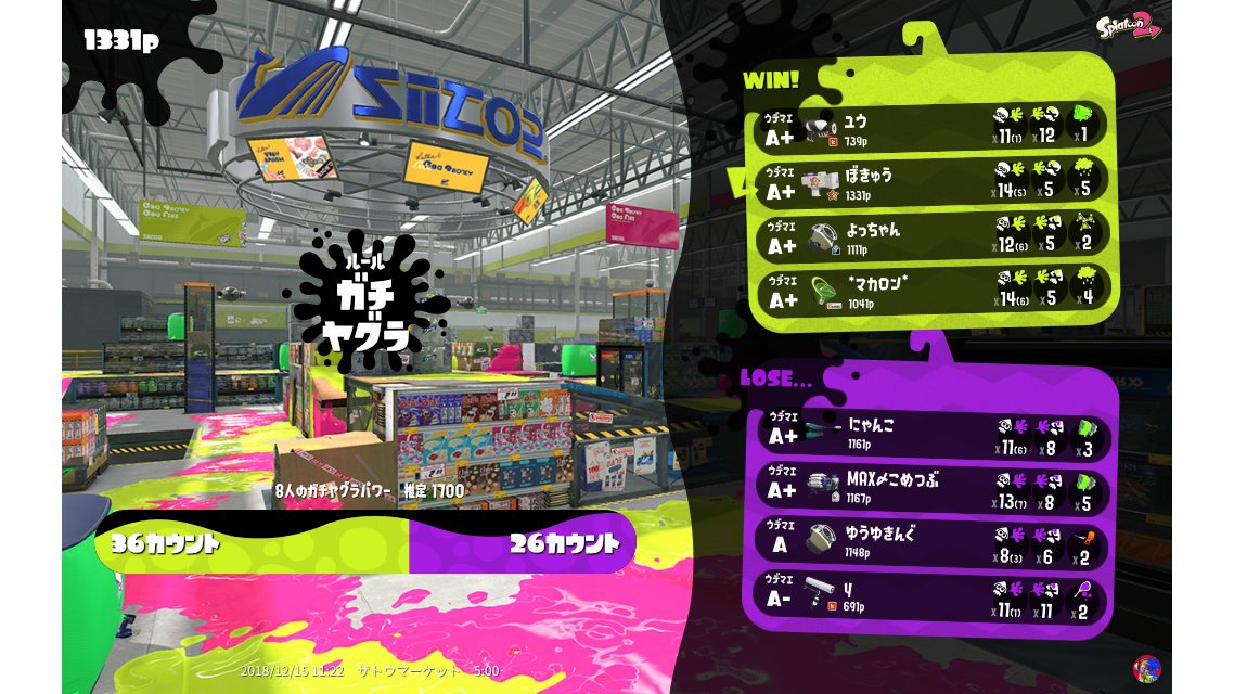 | Name | Weapon | Level | Rank | Inked | k+a/sp | k/d |