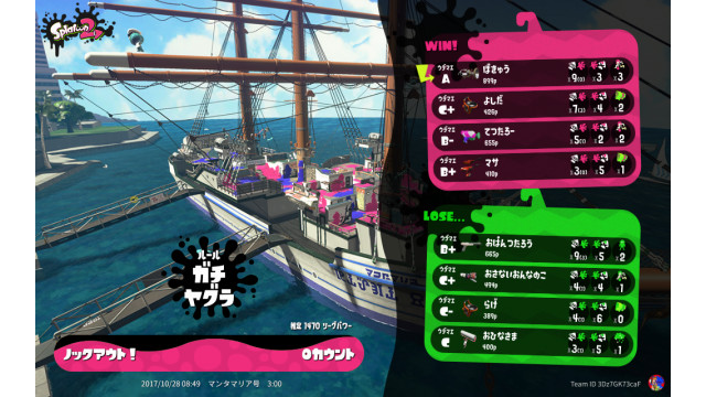 | Name | Weapon | Level | Rank | Inked | k+a/sp | k/d |
