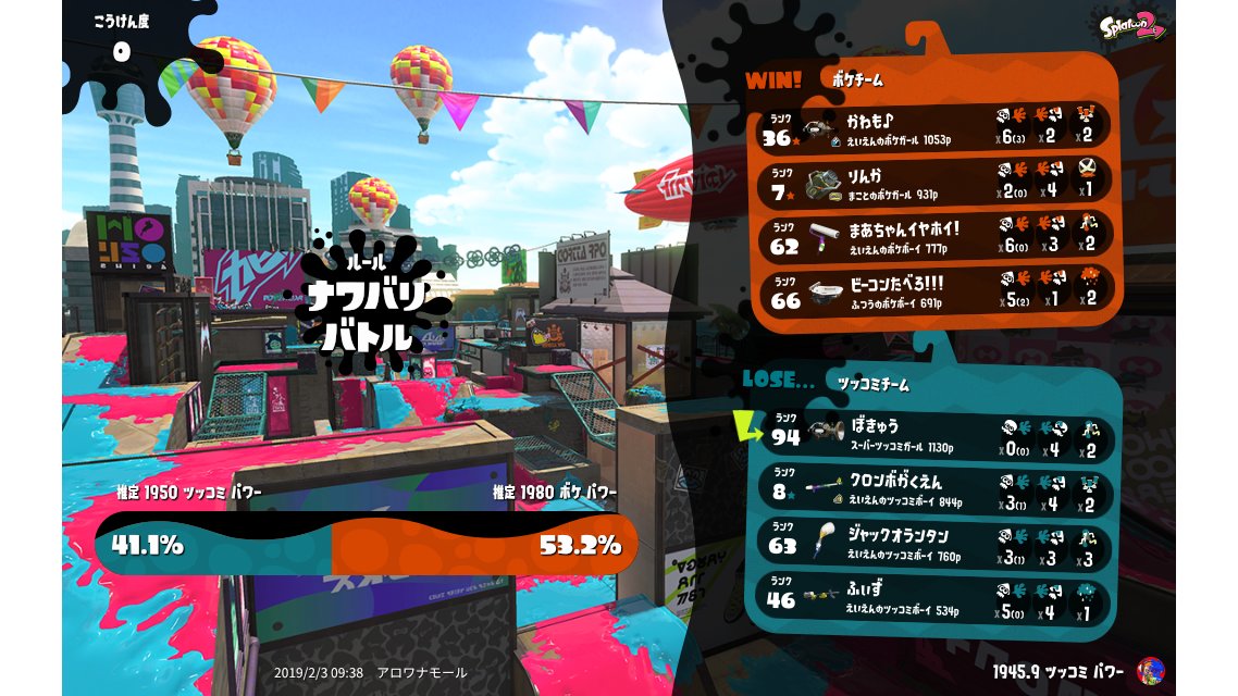 | Splatfest Title | ツッコミ Defender 170 → ツッコミ Defender 190 | ||||||||||||||||||||||||||||||||||