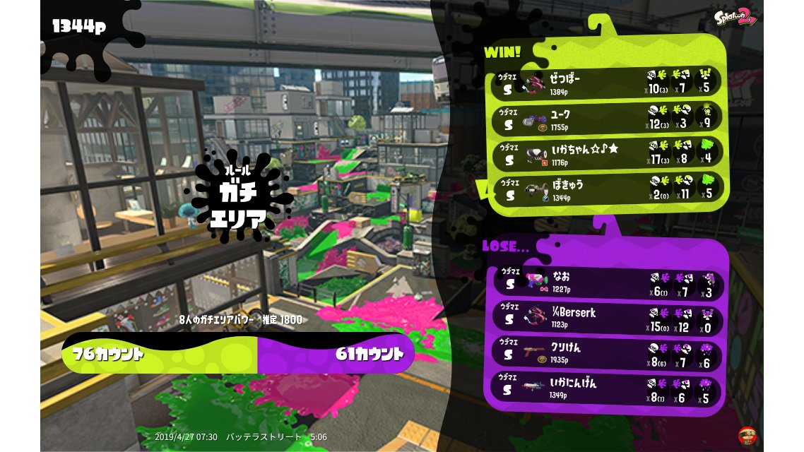 | Mode | Splat Zones - Ranked Battle | ||||||||||||||||||||||||||||