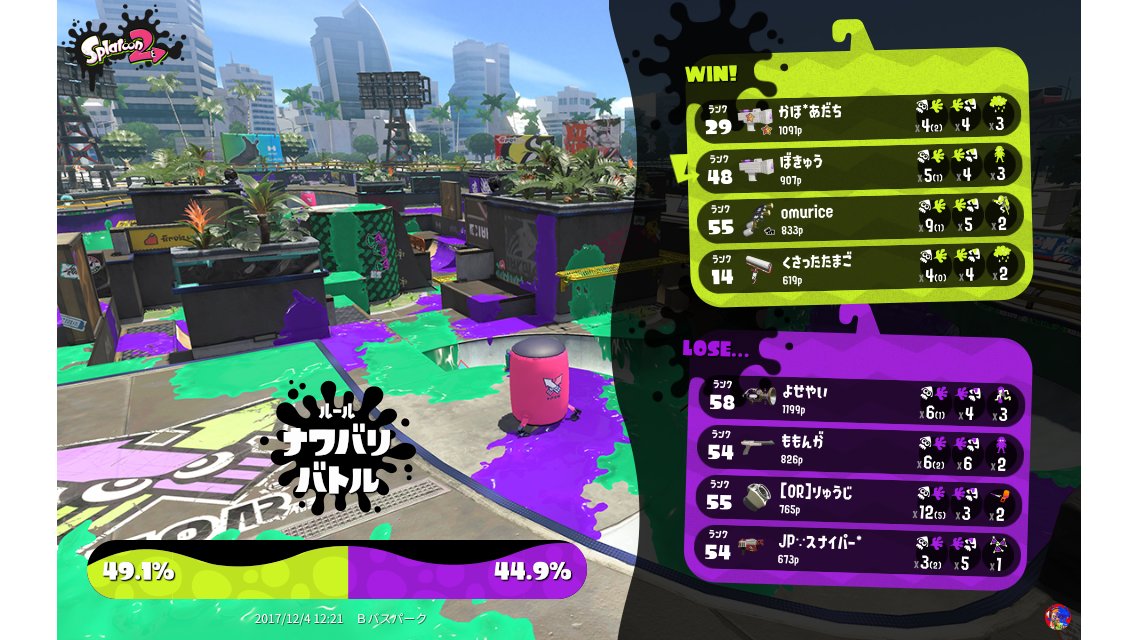 | Mode | Turf War - Regular Battle | |||||||||||||||||||||||||||||||