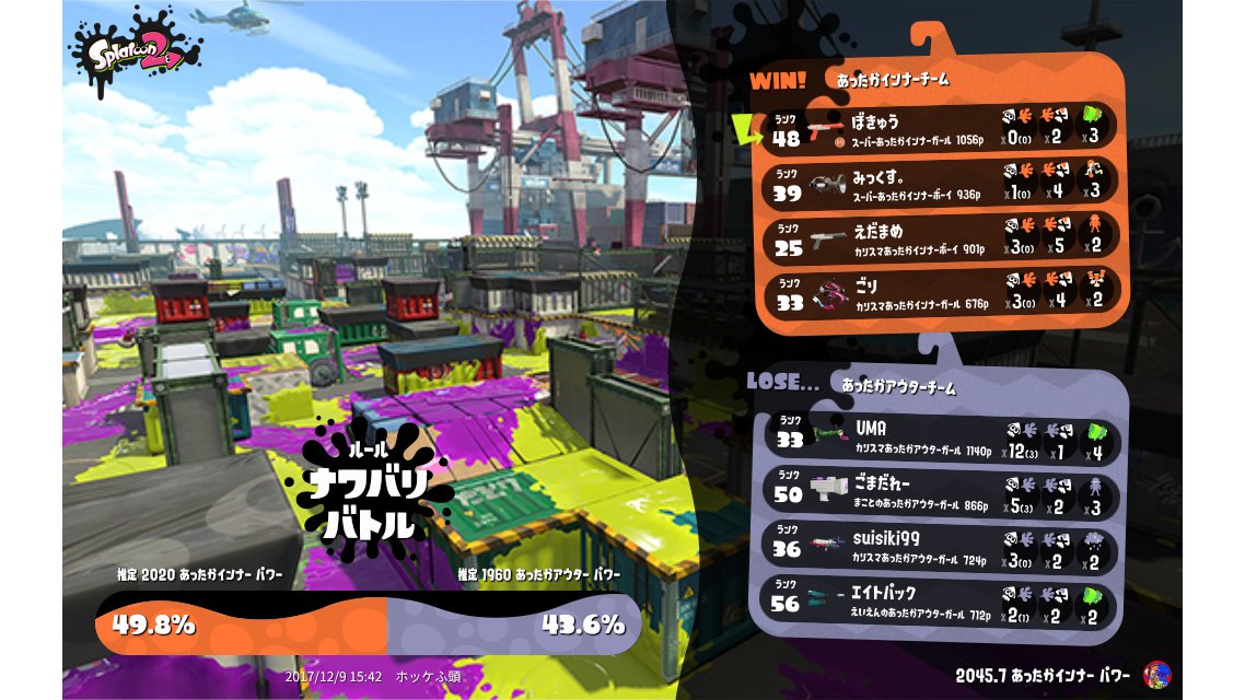 | Splatfest Power | 2,045.7 | ||||||||||||||||||||||||||||||||||