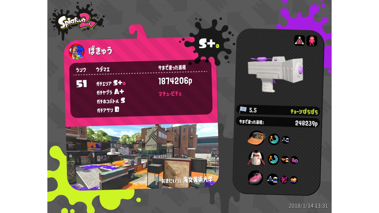 | Name | Weapon | Level | Rank | Inked | k+a/sp | k/d |