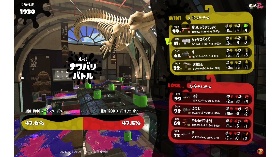 | Their team's splatfest power | 1,930 | |||||||||||||||||||||||||||||||||||||
