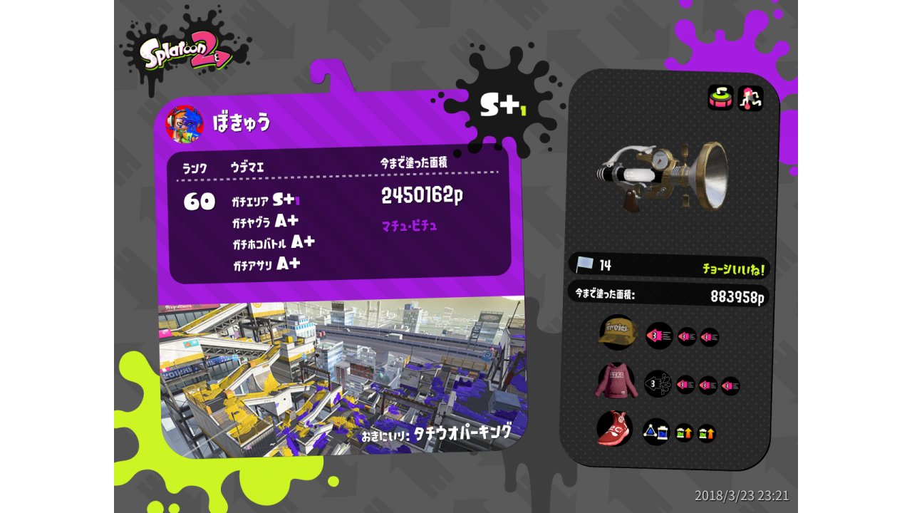 | Weapon | Sploosh-o-matic ( Curling Bomb, Splashdown) | |||||||||||||||||||||||||||||||