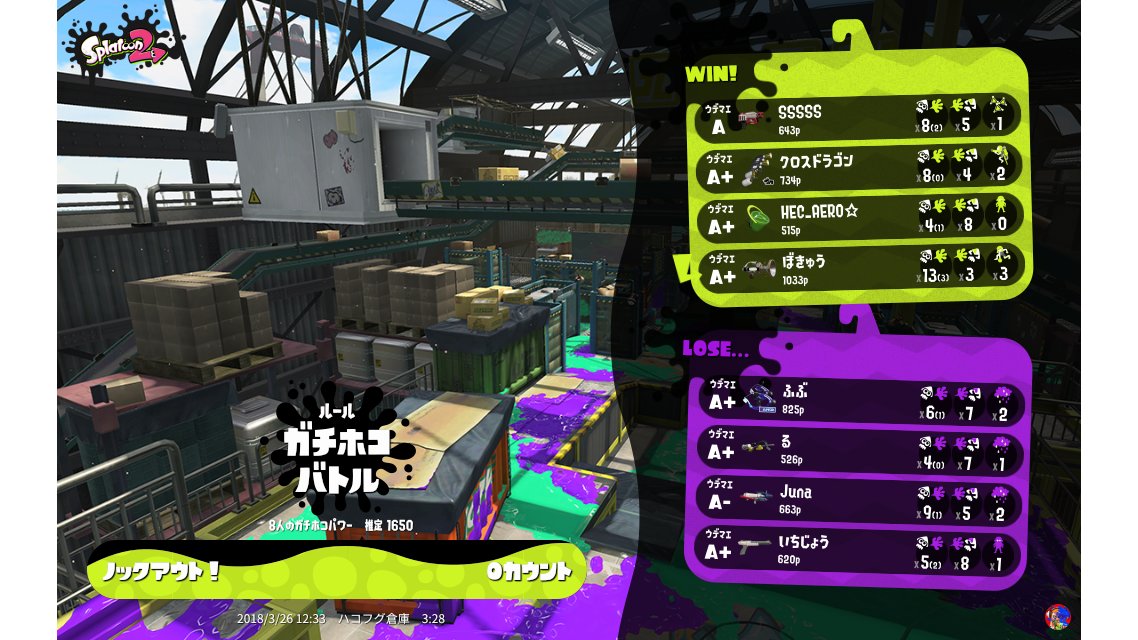 | Name | Weapon | Level | Rank | Inked | k+a/sp | k/d |