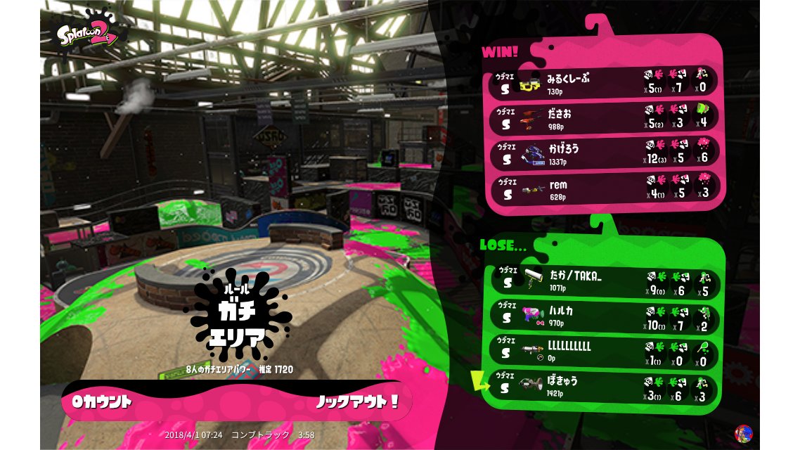 | Mode | Splat Zones - Ranked Battle | ||||||||||||||||||||||||||||||||||