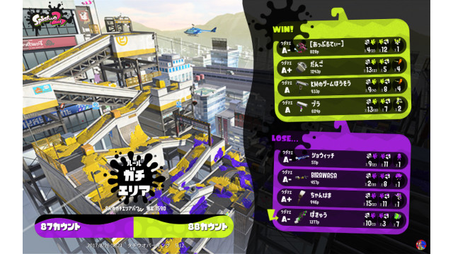 | Name | Weapon | Level | Rank | Inked | k+a/sp | k/d |