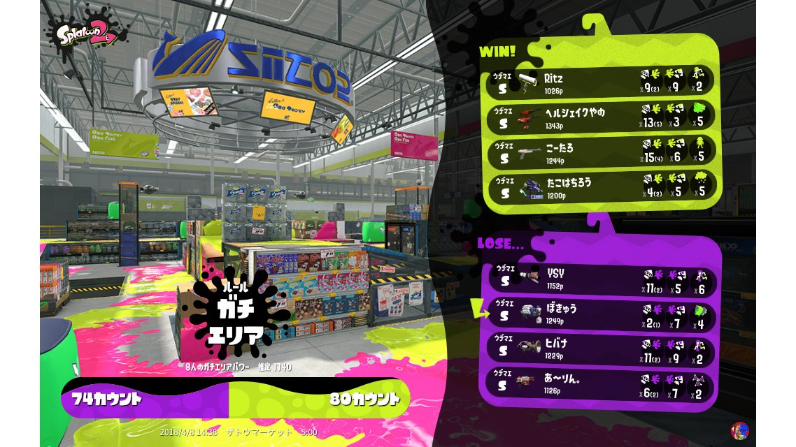 | Mode | Splat Zones - Ranked Battle | ||||||||||||||||||||||||||||||||||