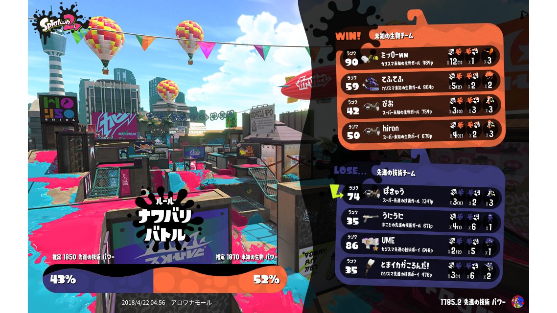 | Splatfest Power | 1,785.2 | ||||||||||||||||||||||||||||