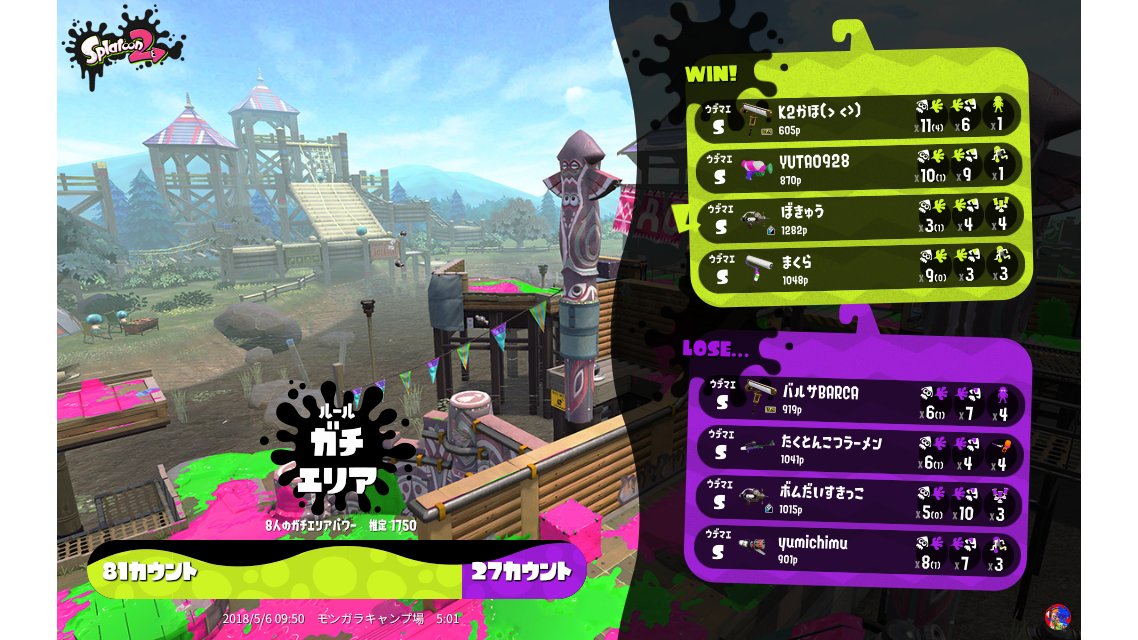 | Mode | Splat Zones - Ranked Battle | |||||||||||||||||||||||||||||||||||||