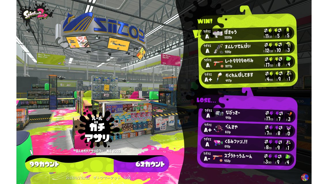 | Name | Weapon | Level | Rank | Inked | k+a/sp | k/d |