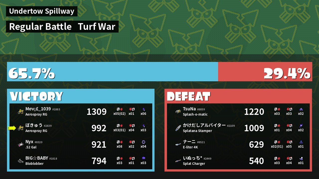 Results of ぼきゅう's Battle