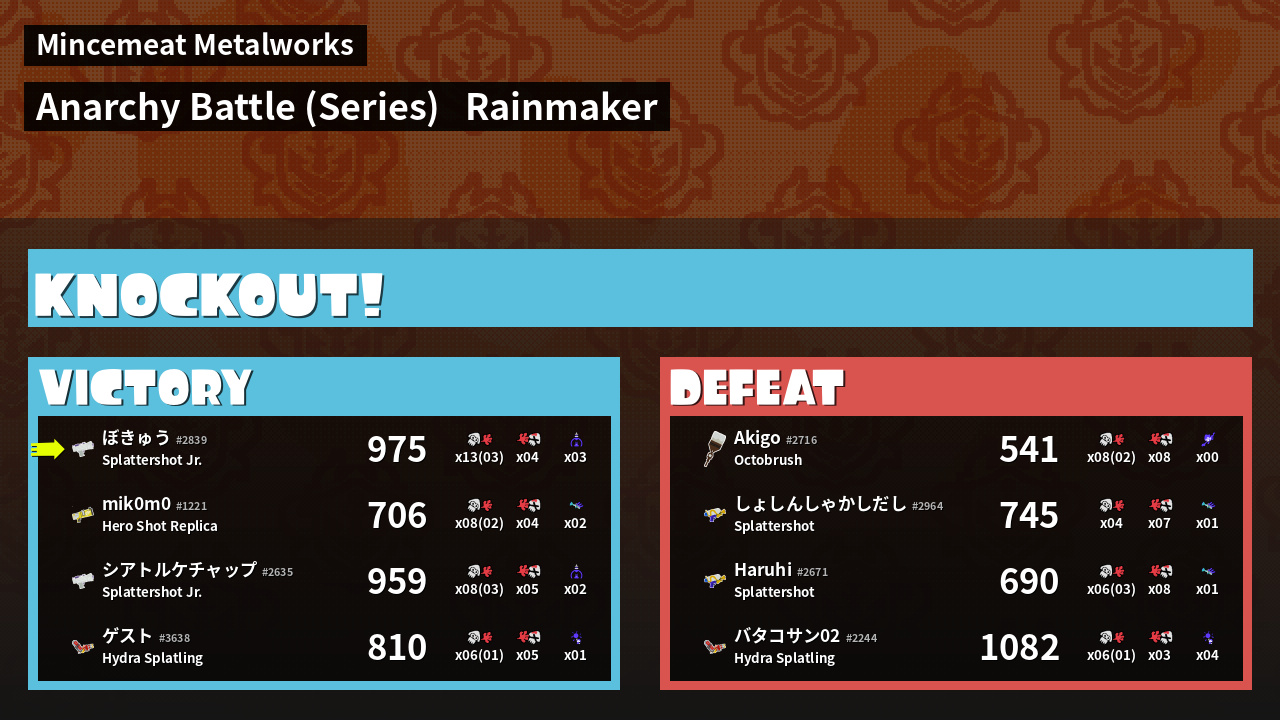 Results of ぼきゅう's Battle