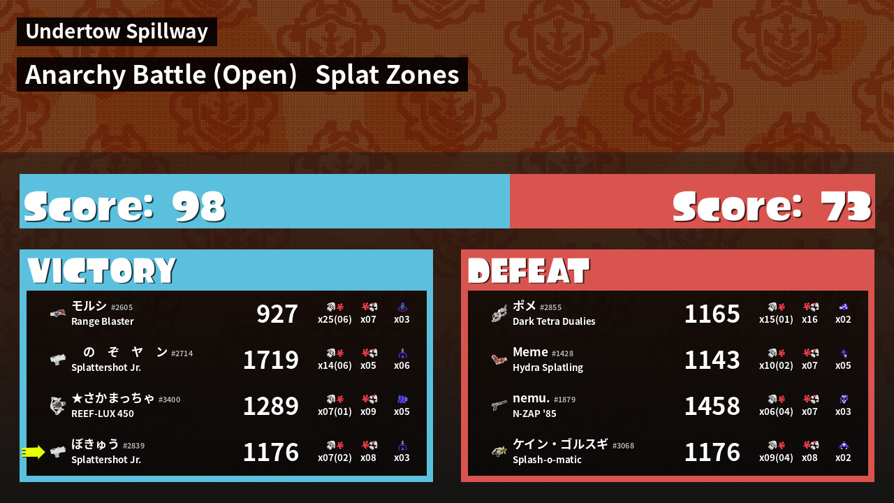 Results of ぼきゅう's Battle