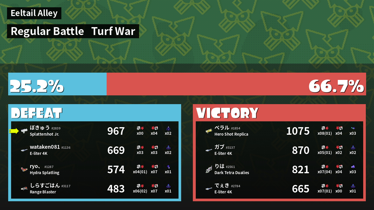 | Weapon | Splattershot Jr. ( Splat Bomb / Big Bubbler) | ||