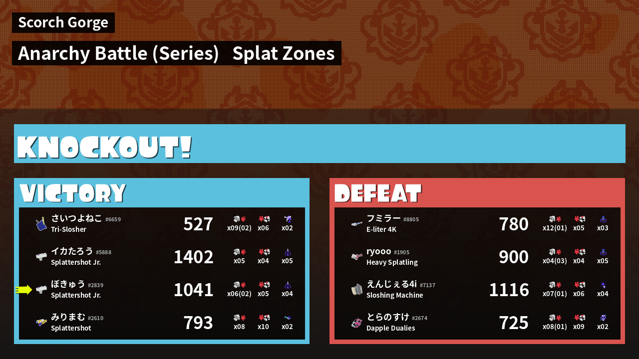 Results of ぼきゅう's Battle
