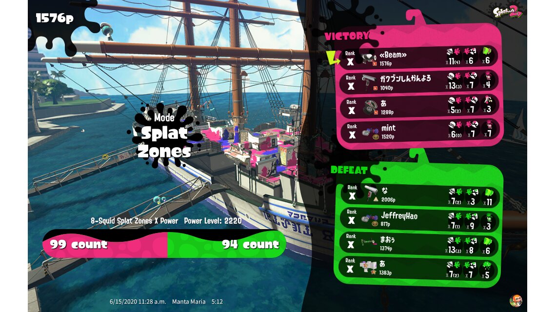 | Mode | Splat Zones - Ranked Battle | |||||||||||||||||||||||||||||||||||||||||||