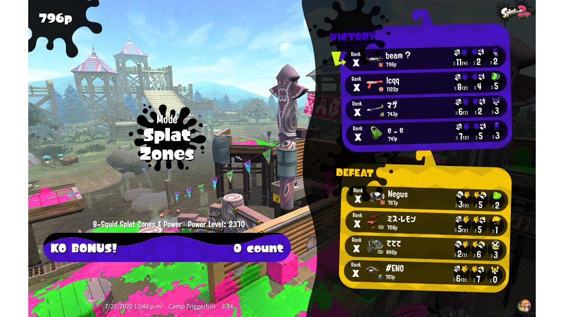 | Mode | Splat Zones - Ranked Battle | ||||||||||||||||||||||||||||||||||