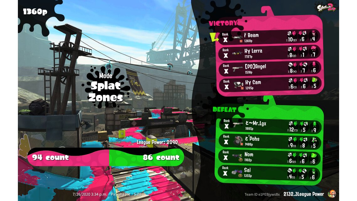 | Mode | Splat Zones - League Battle (Twin) | ||||||||||||||||||||||||||||||||||