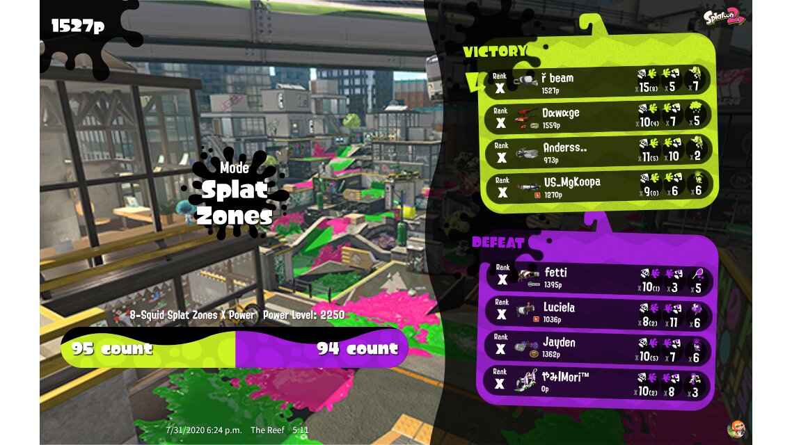 | Mode | Splat Zones - Ranked Battle | ||||||||||||||||||||||||||||||||||||||||