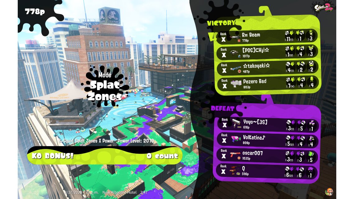 | Mode | Splat Zones - Ranked Battle | ||||||||||||||||
