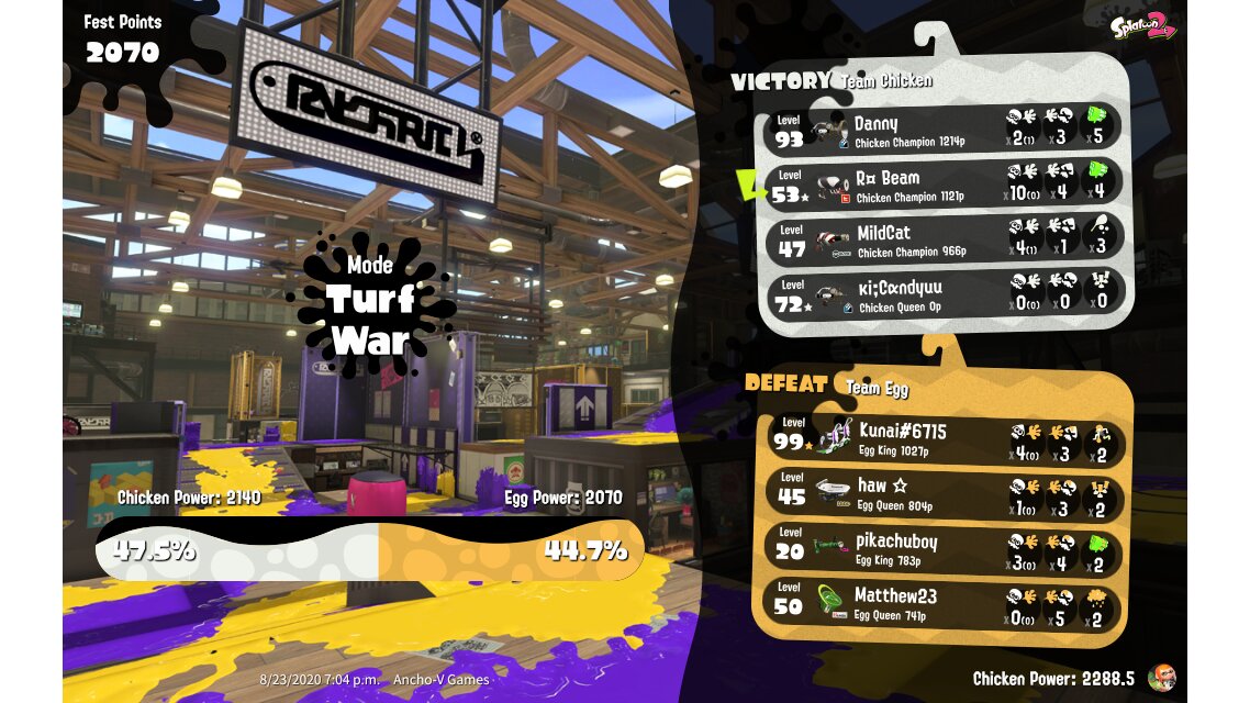 | Mode | Turf War - Splatfest (Pro) | |||||||||||||||||||||||||||||||||||||