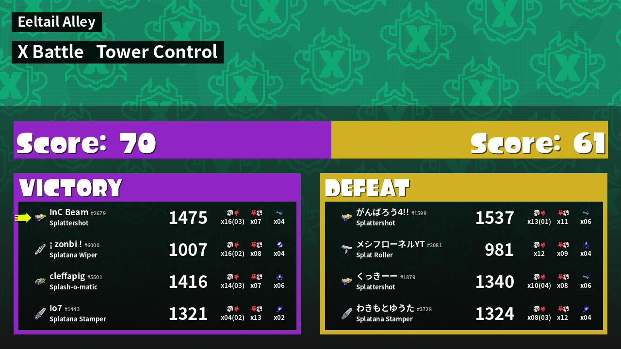 | Mode | Tower Control - X Battle | ||