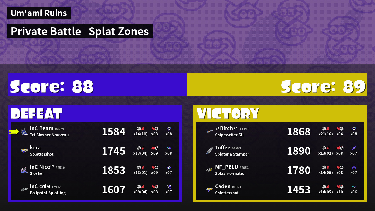 Name | Weapon | Inked | ![]() |