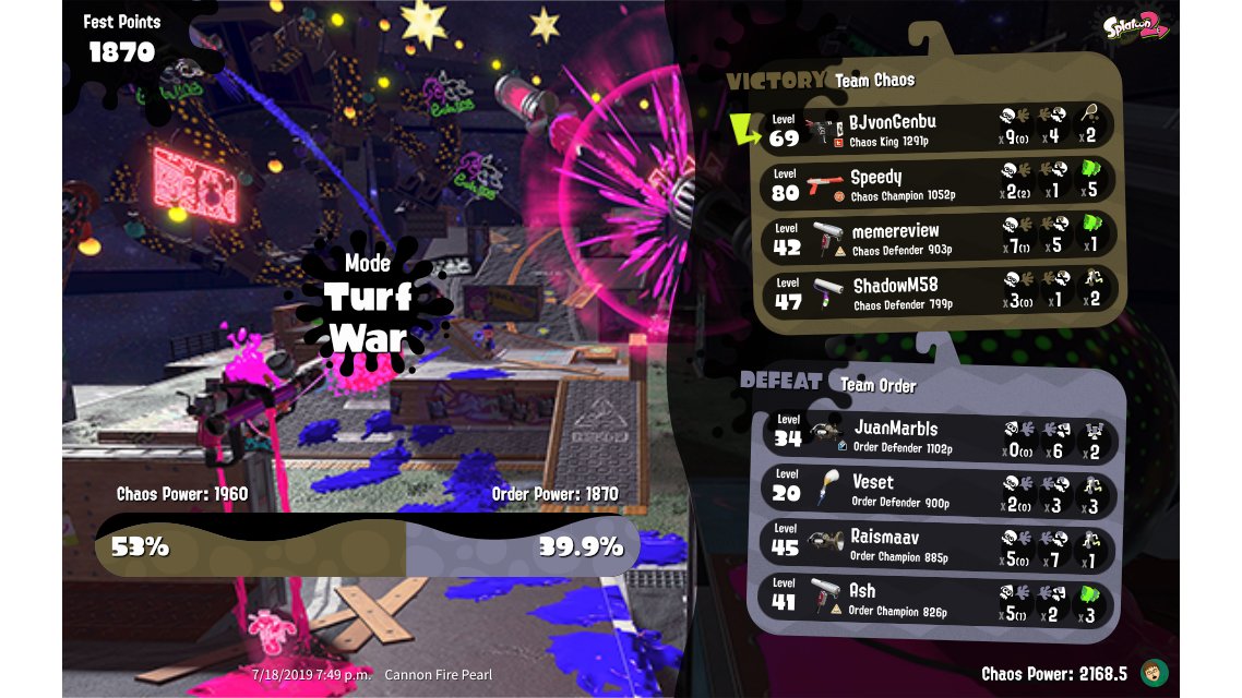 | Splatfest Title | Chaos King → Chaos King | ||||||||||||||||||||||||||||||||||