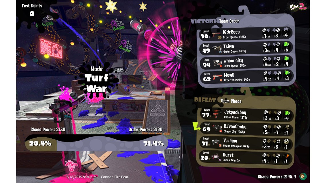 | Splatfest Title | Chaos King → Chaos King | |||||||||||||||||||||||||||||||||||||