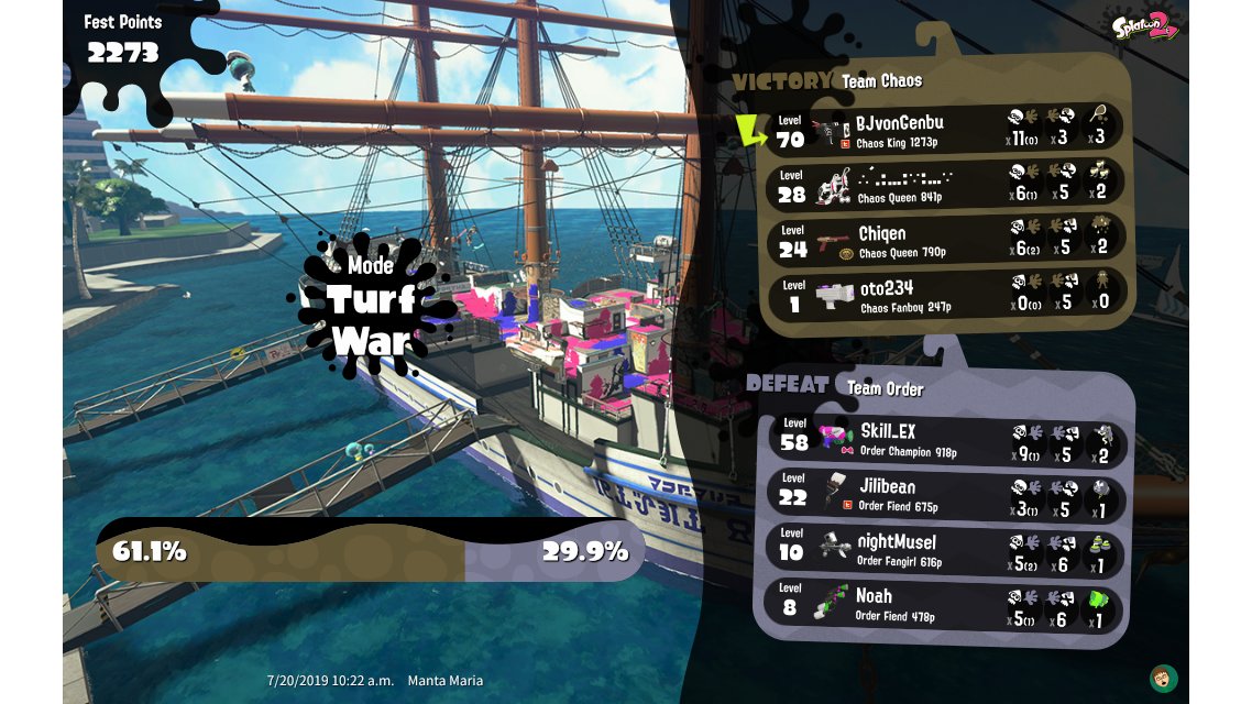 | Splatfest Title | Chaos King → Chaos King | ||||||||||||||||||||||||||||||||||