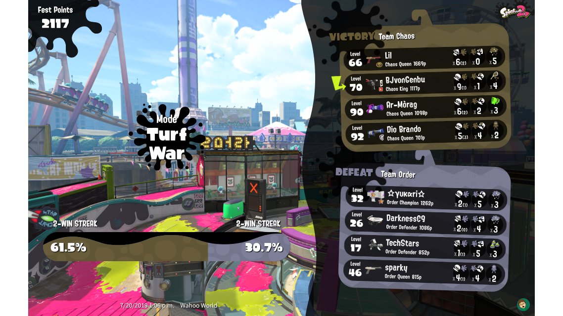 | Splatfest Title | Chaos King → Chaos King | ||||||||||||||||||||||||||||||||||