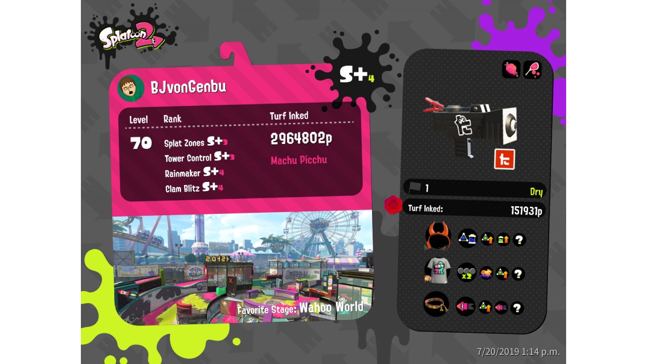 | Weapon | Kensa Splattershot Jr. ( Torpedo, Bubble Blower) | ||||||||||||||||||||||||||||||||||