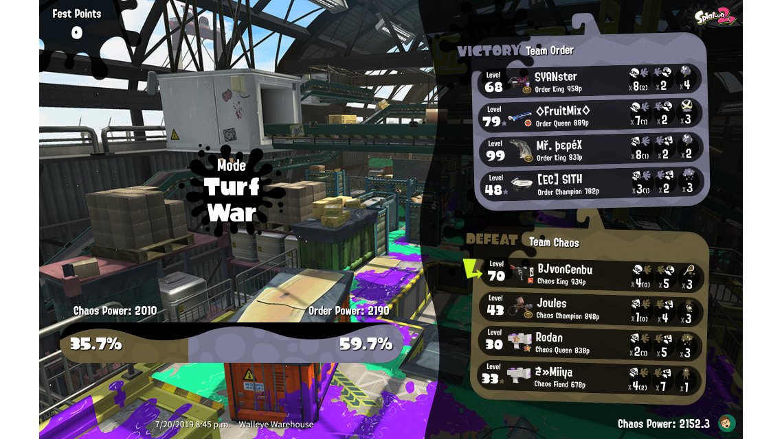 | Splatfest Title | Chaos King → Chaos King | ||||||||||||||||||||||||||||||||||