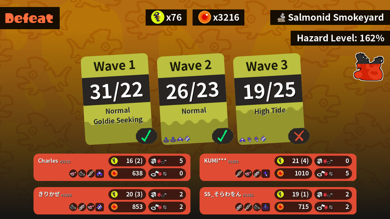 | Boss Salmonid | 8 | 8 | 12 | 6 |