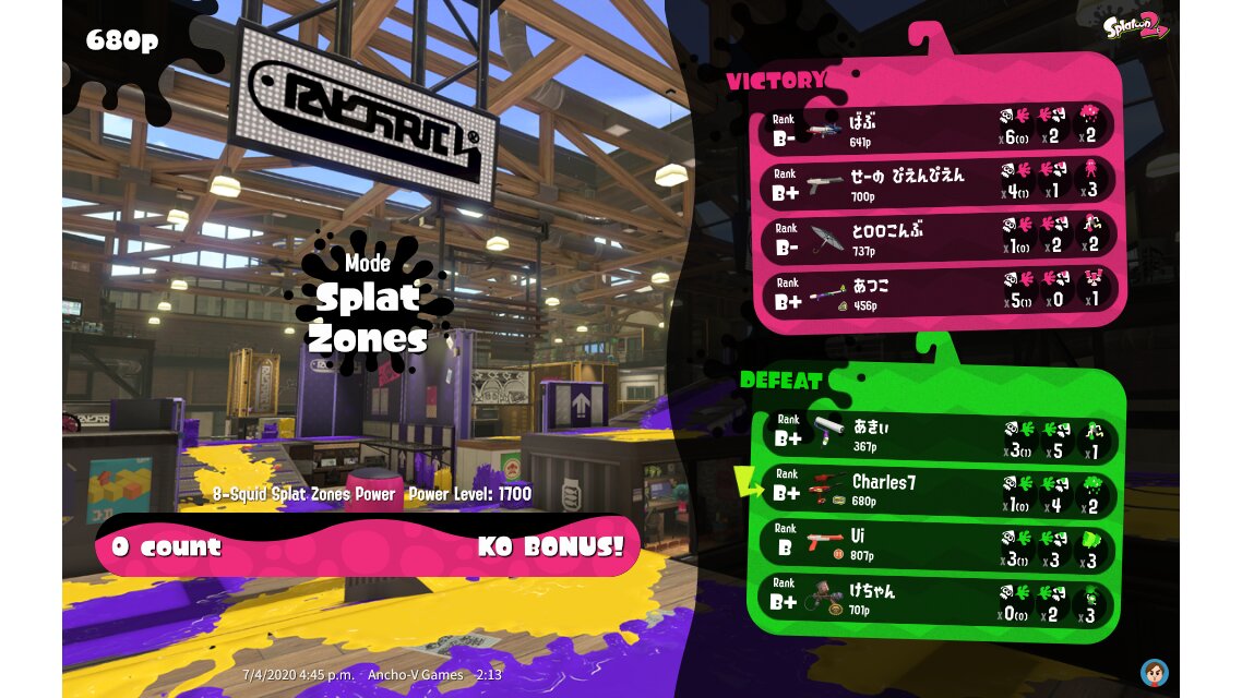 | Mode | Splat Zones - Ranked Battle | ||||||||||||||||||||||||||||||||||||||||